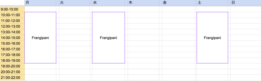バレエ教室・ピラティス・フラダンス・公文式(学習塾)・こどものキリン(絵画教室)・Frangipani(マッサージ、エステ)・バク転教室